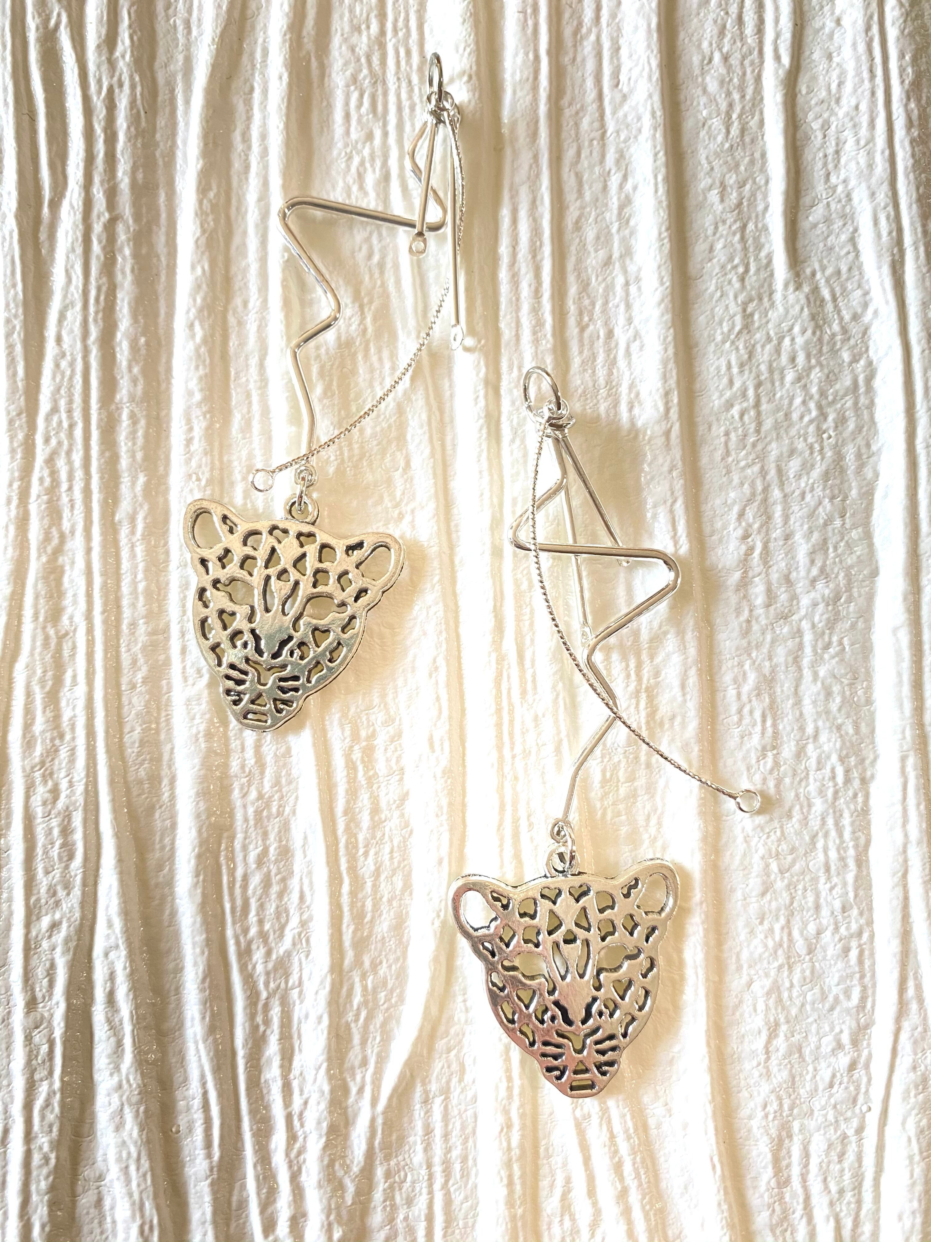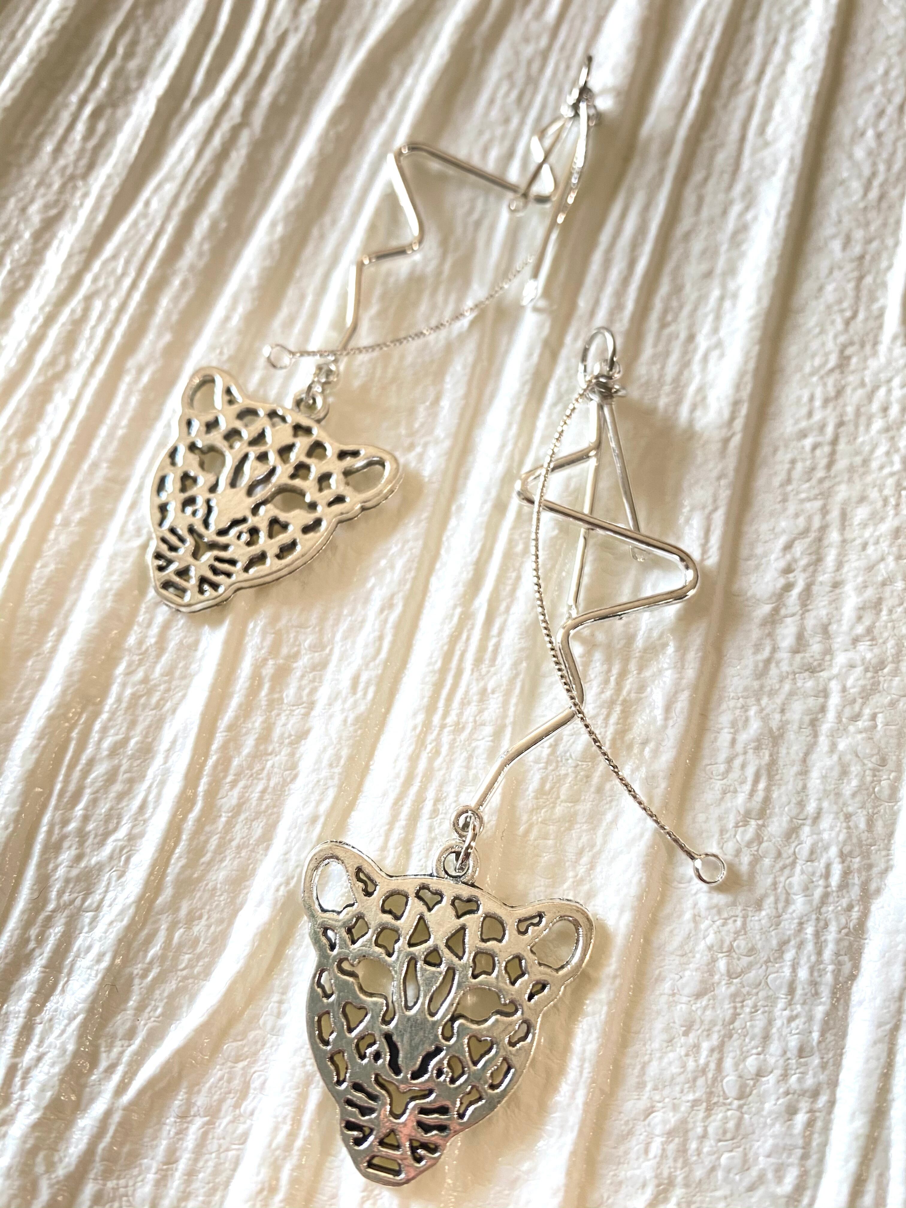 シルバーコネクターとヒョウ【ピアスorイヤリング】