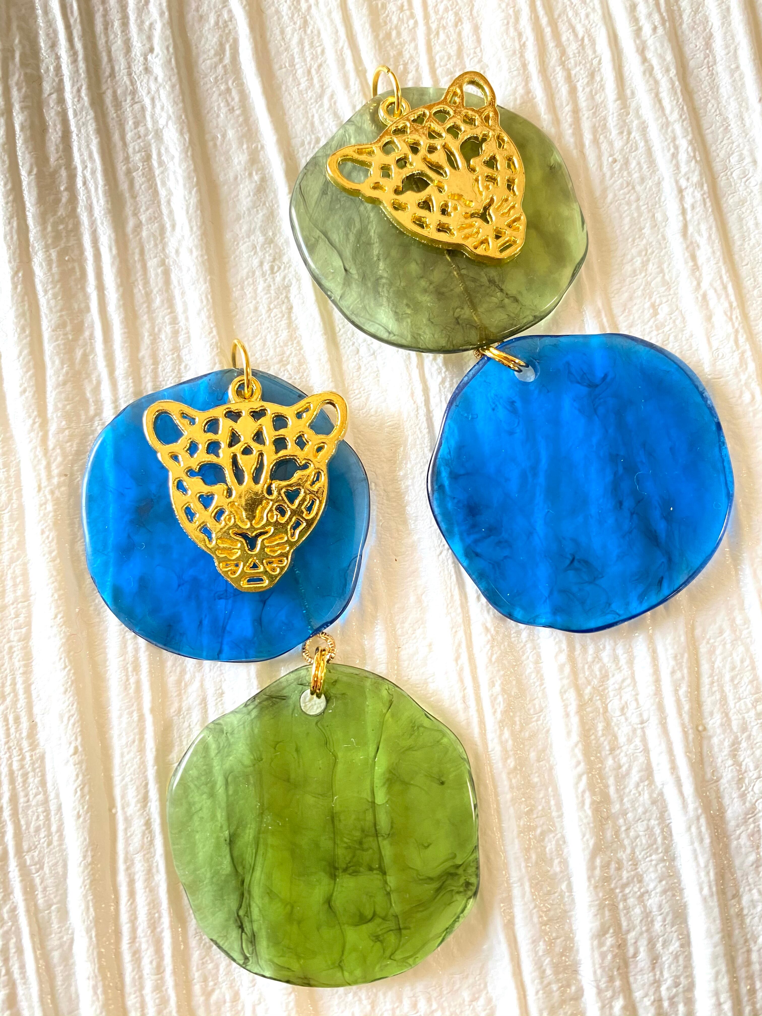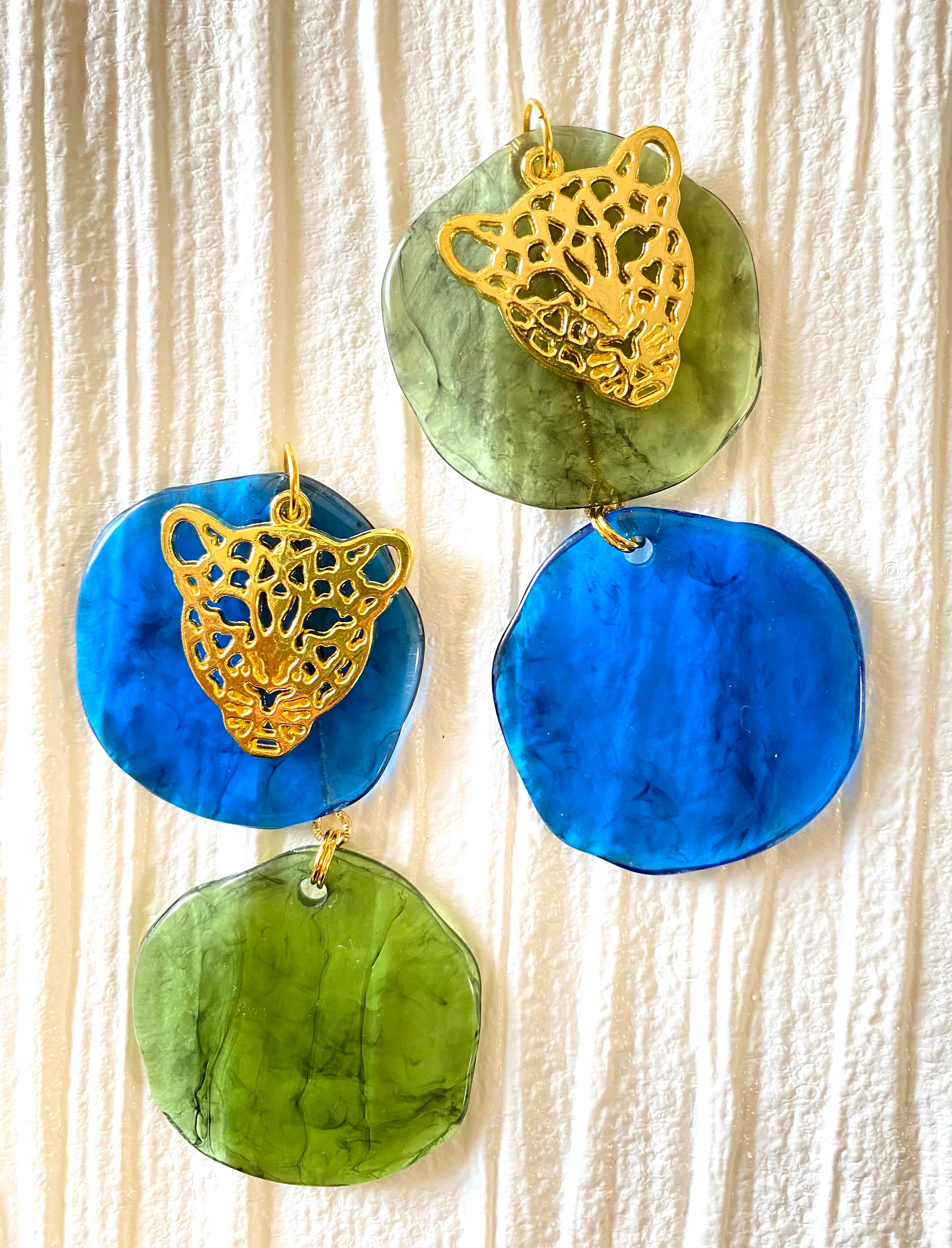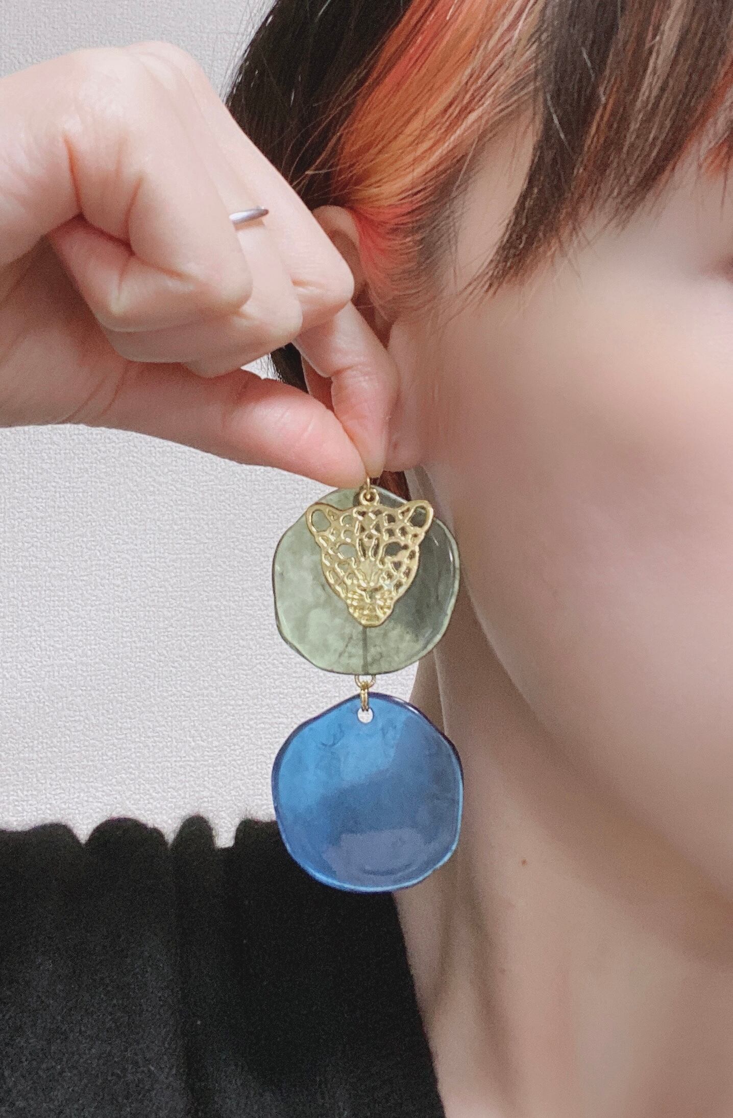 ブルーグリーンと金のヒョウ【ピアスorイヤリング】