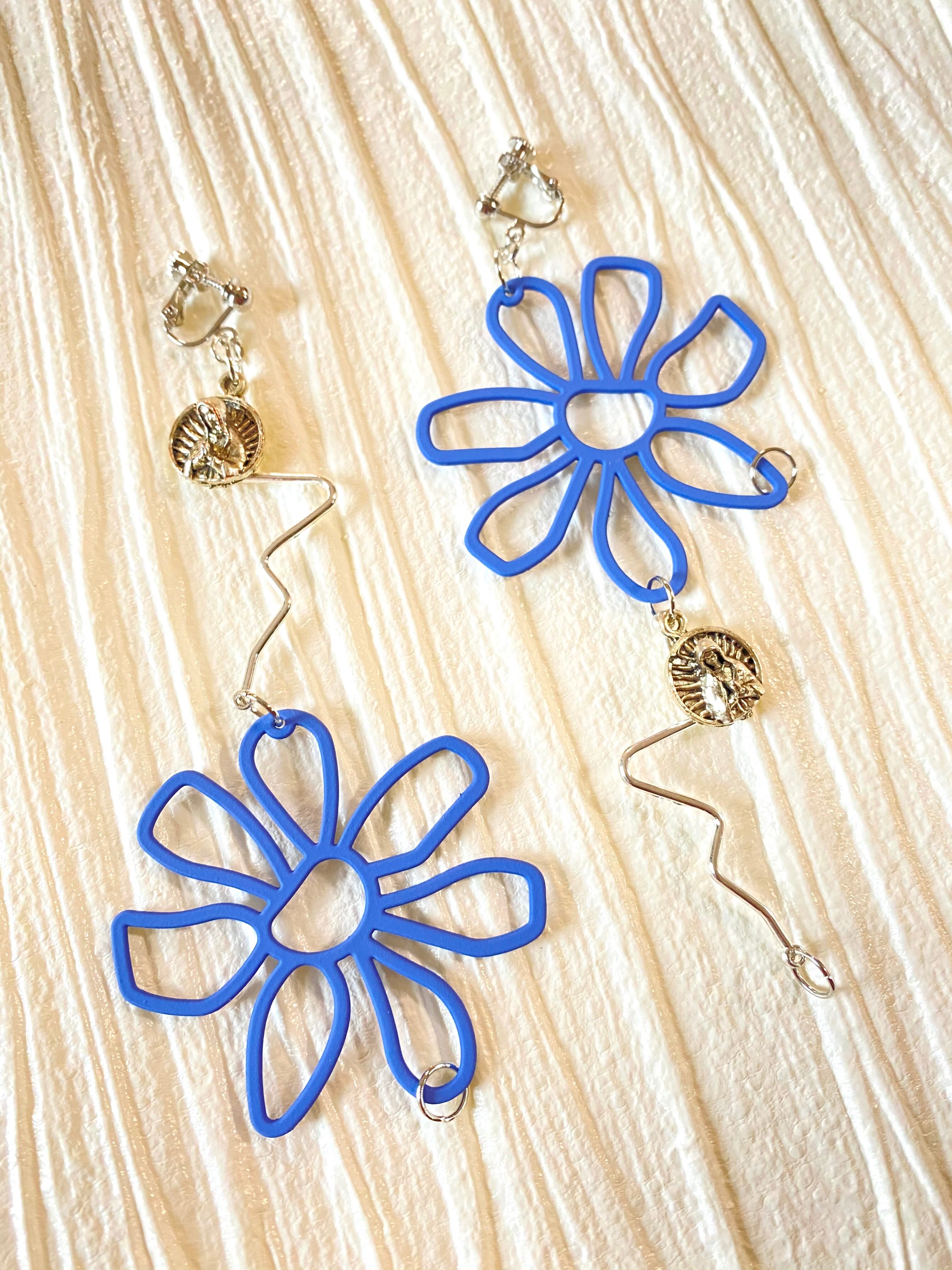 大きな大きなブルーフラワー【ピアスorイヤリング】